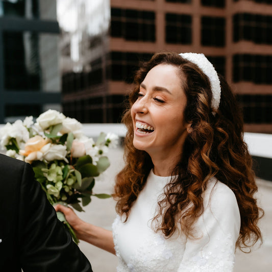 All of Me bridal birdcage veil on headband with white sequin polka dots