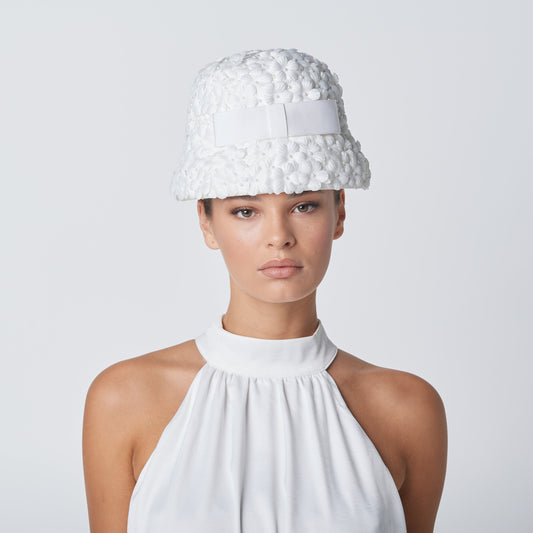 McPhee Cream Velour Felt Pillbox with bow Winter Racewear Headpiece
