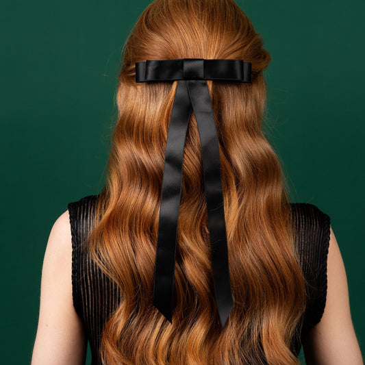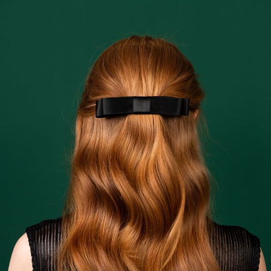 Single Loop Waist Length Satin Bow Luxury Barrette Hair Clip Black Satin
