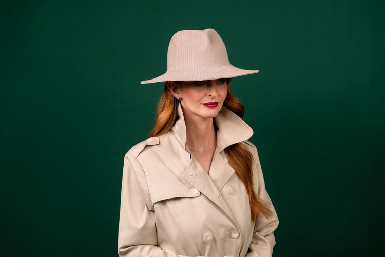 Tawonga Textured Taupe Felt Fedora Hat Winter Racewear Hat