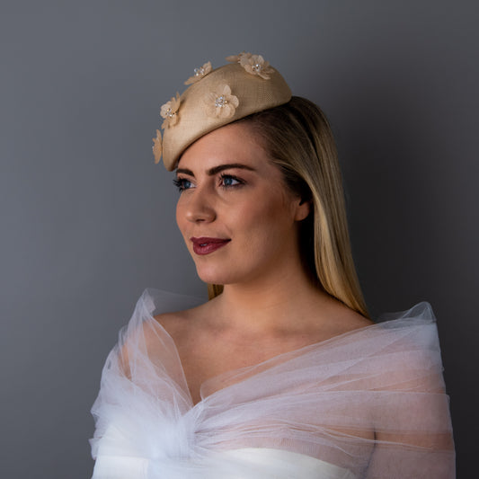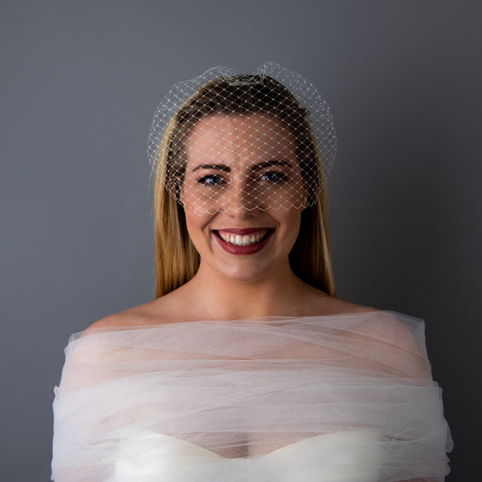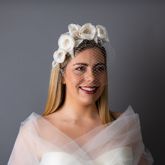 Happily Ever After Bridal birdcage veil with silk flowers on headband