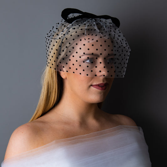 No Other Love Black and White Polka Dot Veil with Black Velvet Bow