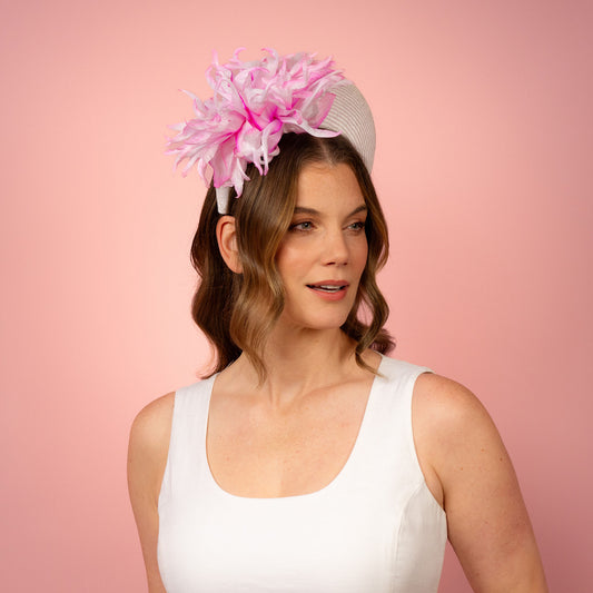 Florence Headband in pink straw with knotted trim Spring Racewear Headpiece
