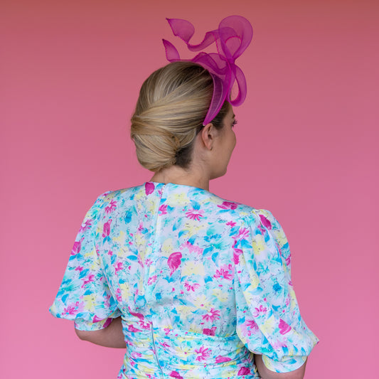 Frankie Floral Crinoline Halo Headband in Pink with vintage flowers