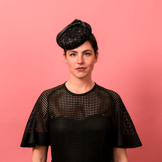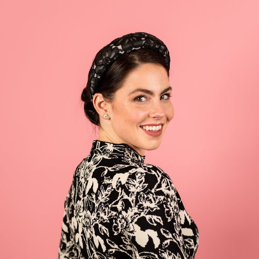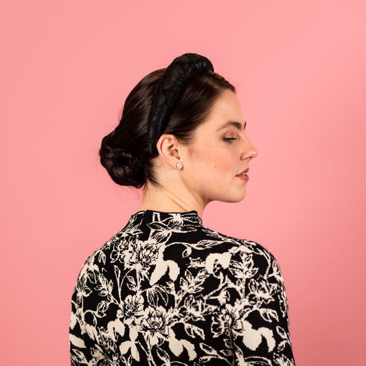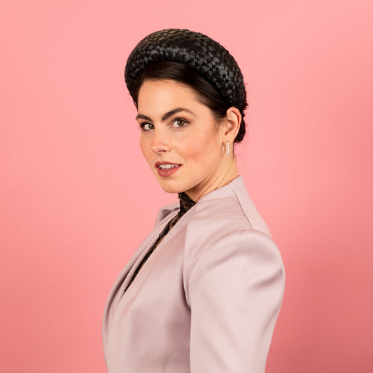 Ash Headband in Black Straw with Texture Vintage Braid Knot