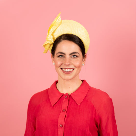 Alexis Boater in Marigold Yellow with Knotted Straw Trim