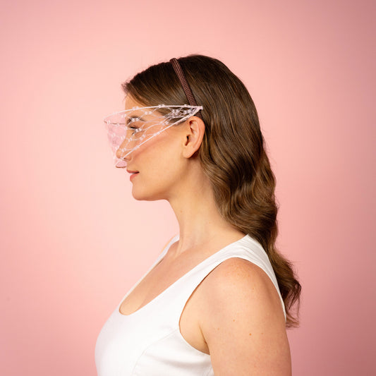 Jessica face veil on headband in pale pink Spring Racewear Headpiece