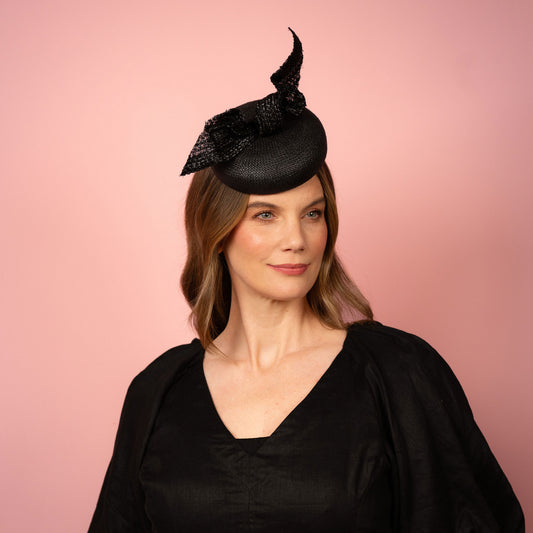Michelle Beret with knot trim in Black Spring Racing Headpiece