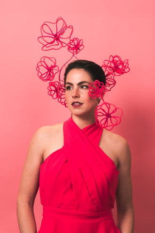 Prancing Peonies Magenta wire flower millinery headpiece