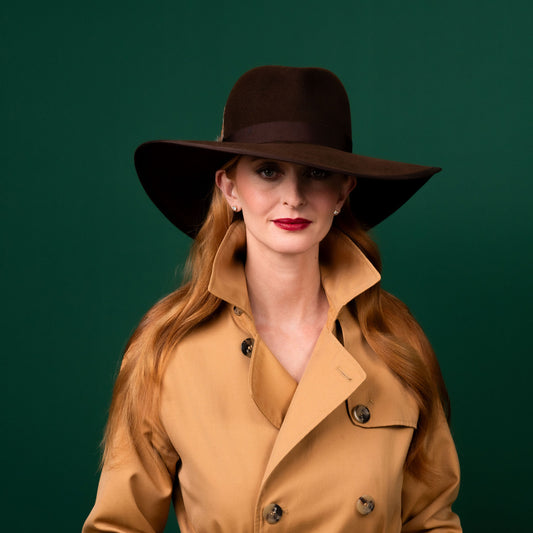 Dell Brown Felt Fedora Hat with feather trim Winter Racewear Hat