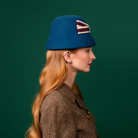 Henley Teal Felt 60's style Hat with Bow Trim Winter Racewear Hat