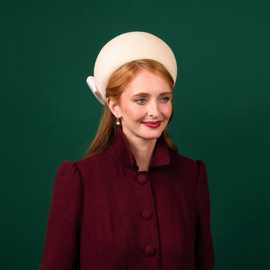Kate Cream Felt Pillbox with Petersham Bow Winter Racewear Headpiece