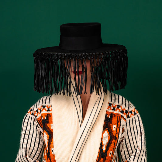 Lloyd Black Felt Boater with Knotted Tassels on Brim Edge Winter Racewear Hat