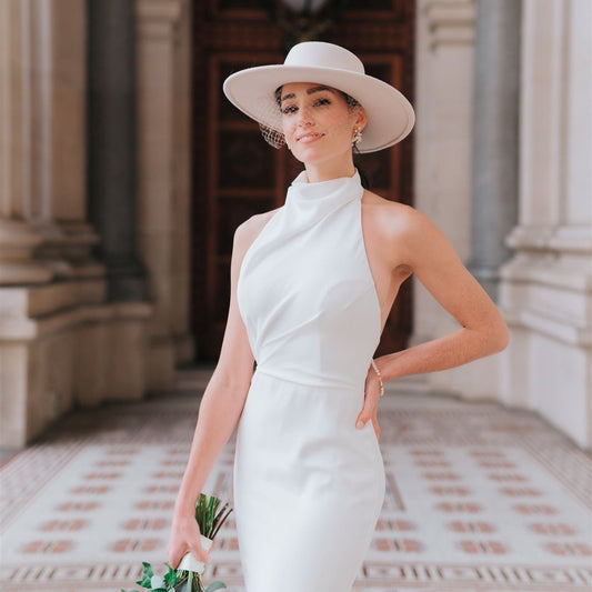 Wedding hats for brides are a chic and timeless choice, adding a touch of vintage-inspired elegance to bridal attire. These stylish headpieces come in various styles, from classic pillbox hats to wide-brimmed sun hats adorned with lace, flowers, or veils. Wedding hats not only provide a unique and sophisticated look but also offer sun protection for outdoor ceremonies. They're ideal for brides who seek a distinctive, fashion-forward statement on their special day, infusing their wedding ensemble with personality and flair.